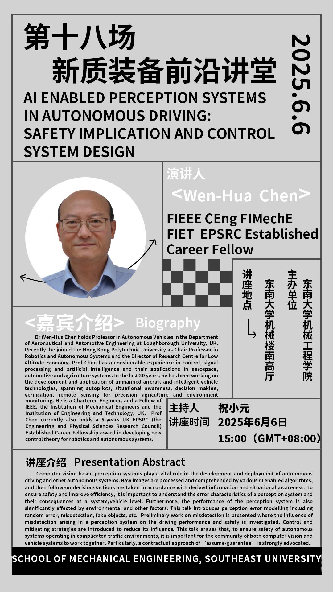 香港理工大学Wen-Hua Chen教授应邀来我院开展学术交流