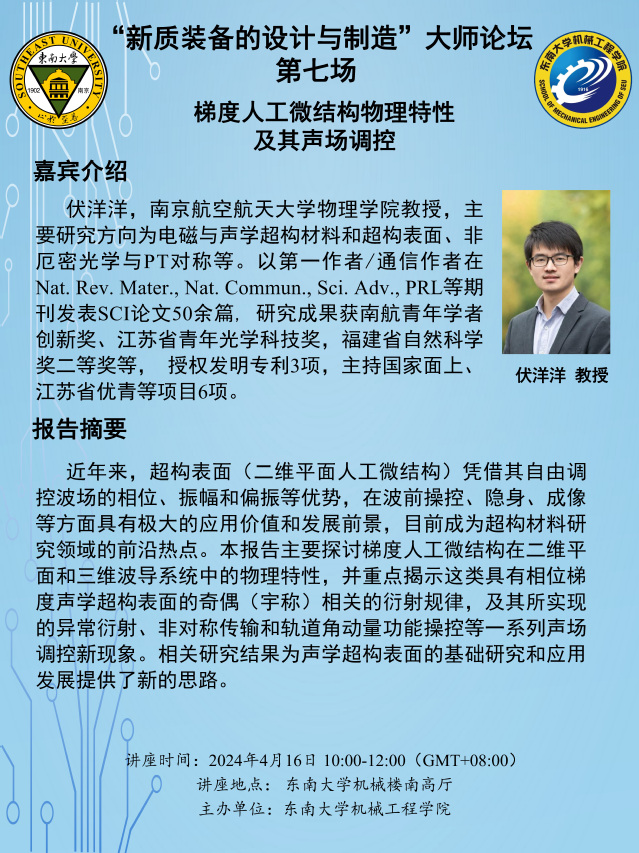 讲座地点: 东南大学机械楼南高厅