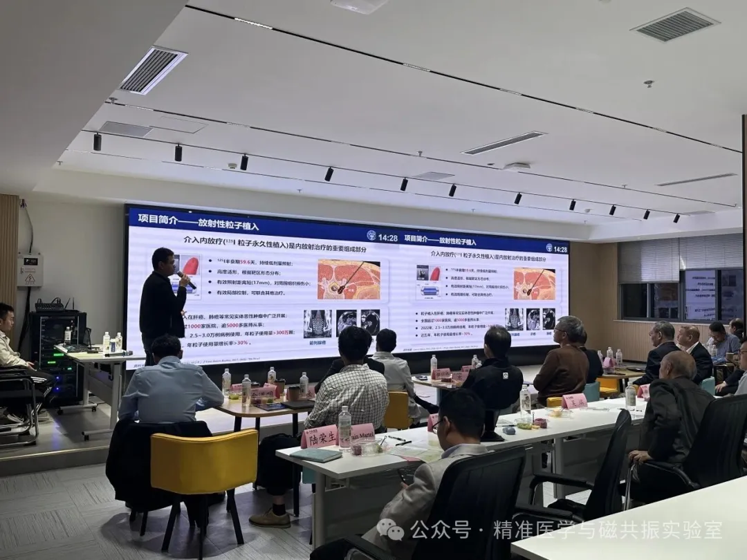 国家高层次青年人才、东南大学附属中大医院陆建副主任主持了“磁共振下的磁热疗内放疗”专题。在该专题中,东软医疗副总裁徐勤博士介绍了东软磁共振产品研发和创新技术发展历程,破核心部件卡脖子之局、破无可用系统平台之局,与AI智能结合的快速分子成像技术与临床应用等。北京大学高嵩教授介绍了发展具备磁感应热疗功能的诊疗一体化MRI系统的技术挑战,MRI梯度线圈如何为磁感应热疗提供高频交变磁场、高频交变磁场对超导磁体的影响与MRI系统的解决方案等。上海联影医疗科技有限公司代表、联合创新部总监袁健闵博士介绍了联影磁共振的技术进展,5T超高场MRI超高清成像助力重大疾病精准诊断,超高时空分辨率live成像技术捕捉动态影像,全球首台碳化硅磁共振实现绿色节能助力新能源革命。鑫高益梁平博士介绍了无液氦磁共振创新机型与诊疗一体化应用,超导可旋转全身多体位成像MRI系统以及其在对脊柱侧弯诊断上的应用,超大口径无液氦术中可移动磁共振等。东南大学附属中大医院陆建主任介绍了介入内放疗放射性粒子植入技术的发展与应用,自主研发的复合粒子磁热疗样机,以及提出如何利用现有磁共振进一步实现磁热疗走向临床,促进了与会专家的深入讨论。
