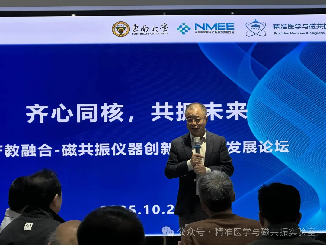 “产教融合—磁共振仪器创新与产业发展论坛”于10月22在东南大学国家医学攻关产教融合创新平台(以下简称国创平台)成功举办,机械工程学院为国创平台重要建设支撑力量,医工交叉是学院重点发展方向。本次论坛由国创平台负责人滕皋军院士和机械工程学院倪中华教授倡议、江苏省精准医学装备设计与制造重点实验室精准医学与磁共振方向组织,汇聚了国内主要磁共振企业、科研院所、医疗企业和金融企业等代表,围绕磁共振仪器的前沿技术攻关、产业生态构建展开深度对话,探讨“磁共振下的磁热疗内放疗”和“非常规医学磁共振装备” 两大专题,共同擘画我国磁共振装备自主可控与高质量发展的崭新路径,进一步推动磁共振技术在医学方面的创新应用与转化。