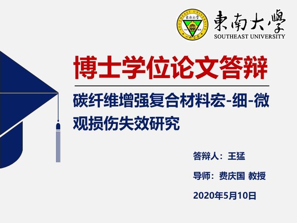 王猛同学本科毕业于东南大学工程力学系,2013年9月加入研究所并在2015年转为攻读博士学位,师从费庆国教授,主要研究方向是碳纤维增复合材料的强度评估,其博士论文题目为《碳纤维增强复合材料宏-细-微观损伤失效研究》。论文发展了基于多尺度模型的复合材料失效性能预示方法,揭示了结构参数、不确定性等因素对复合材料力学性能和失效行为的影响规律,为新型复合材料结构的设计与研制提供指导。王猛同学攻博期间成绩优异,参加了多项国家级课题研究课题,主持了国家公派留学基金、江苏省博士研究生创新计划、东南大学优秀博士论文基金,以第一作者在Composite Structures、ASCE Journal of Aerospace Engineering、复合材料学报等国内外高水平期刊发表SCI论文5篇、EI论文1篇。
