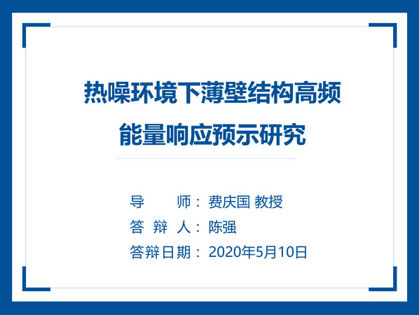 陈强同学本科和硕士阶段就读于南京航空航天大学,2016年9月加入研究所攻读博士学位,师从费庆国教授,主要研究方向是多场环境下飞行器结构中高频动响应预示,其博士论文题目为《热噪环境下薄壁结构高频能量响应预示研究》。论文发展了气动加热和气动噪声环境下薄壁结构在频域和时域能量响应预示方法,揭示了热效应、耦合强度、不确定性等因素对薄壁结构高频能量响应的影响规律,为高速飞行器结构的设计与研制提供指导。陈强同学攻博期间成绩优异,参加了多项国家级课题研究课题和型号攻关任务,主持了国家公派留学基金、江苏省博士研究生创新计划、东南大学优秀博士论文基金资助,以第一作者在AIAA/ASME会刊、Aerospace Science and Technology、航空动力学报等国内外航空航天期刊发表SCI论文6篇、EI论文4篇。